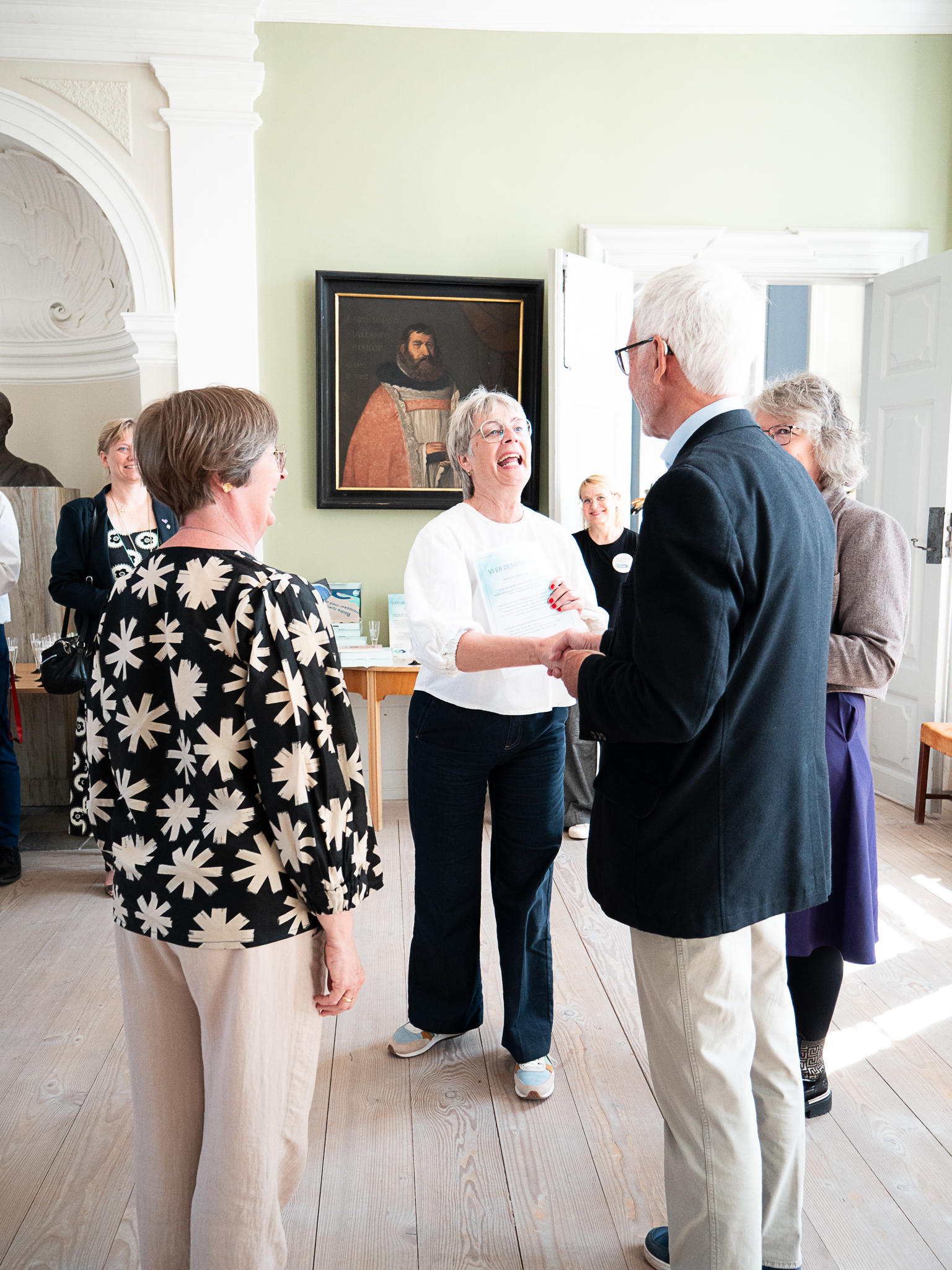 Ved dagens fejring i Landemodesalen i Roskilde Palæ fremhævede stiftets ældre- og kirkekonsulent Lillian Jordan Nielsen betydningen af samarbejdet og takkede alle, der har bidraget til at give projektet “luft under vingerne”.