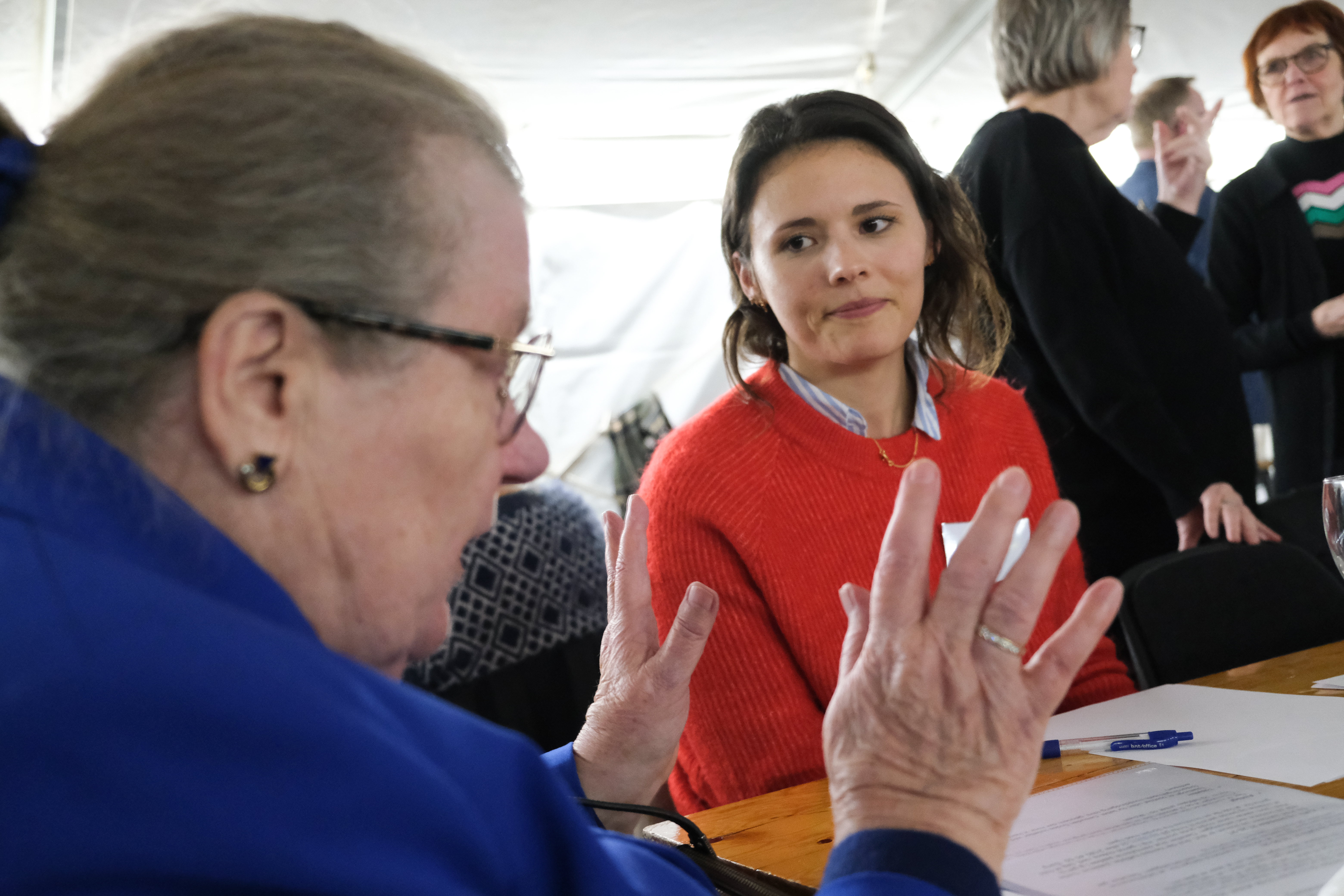 Ved flere af bordene handlede samtalen om, hvad man hver især ville kunne bidrage med i et menighedsråd. Der blev nævnt egenskaber som ordentlighed og samarbejdsvilje eller kompetencer som ledelseserfaring, erfaring med økonomistyring, organisationsevner, viden om lokalsamfundet og slet og ret holdninger til sin lokale kirke.