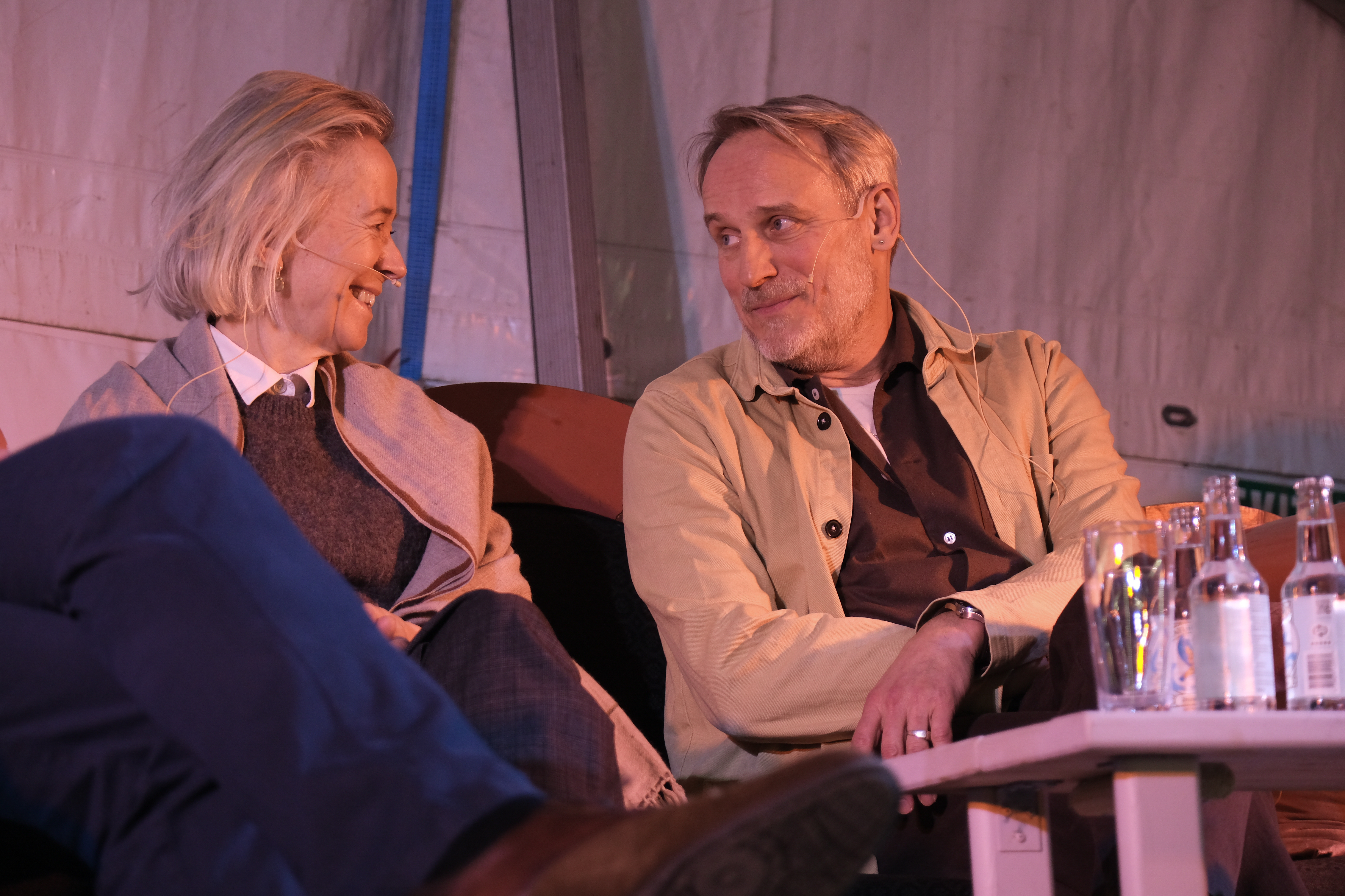 Efter middagen indtog Anton Pihl, der er formand for Landsforeningen af menighedsråd, scenen sammen med skuespiller Rasmus Botoft og sanger/sangsangskriver Anne Dorte Michelsen. Sammen skulle de drøfte, hvad kirke og tro betyder for os alle sammen.