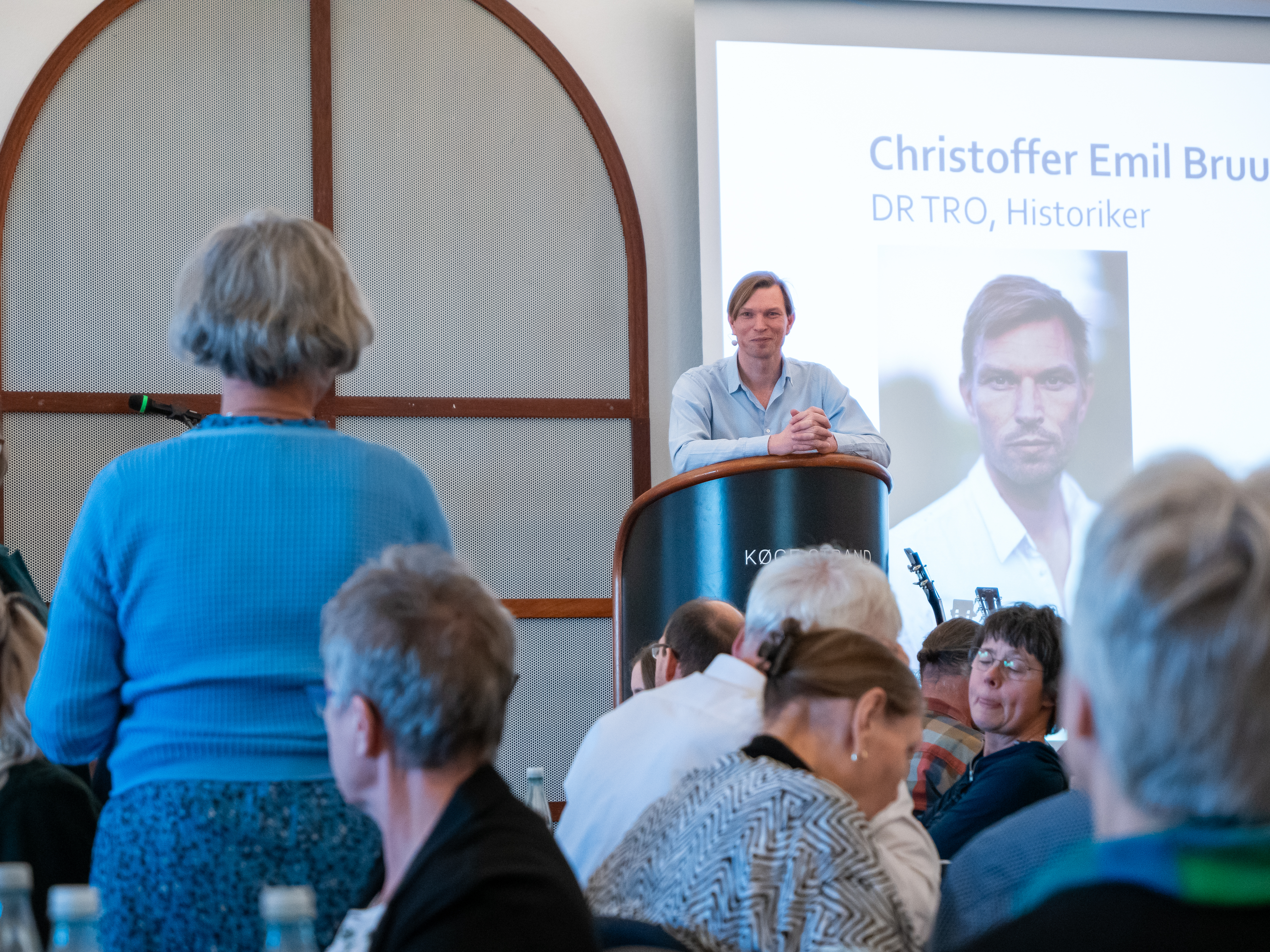 Historiker og trosredaktør på DR, Christoffer Emil Bruun, kom i sit foredrag blandt andet ind på debatten om aktiv dødshjælp, der for ham, er den ultimative overgivelse til individets selvbestemmelse.Han var bekymret over debatten, da han ikke mener, at mennesket er beregnet til selv at skulle træffe bestemmelse om døden.