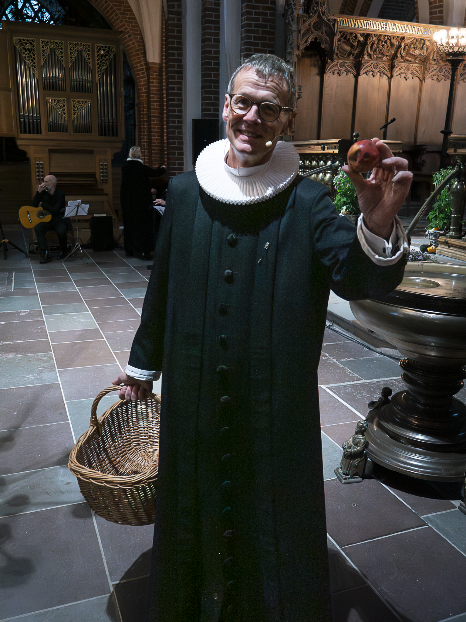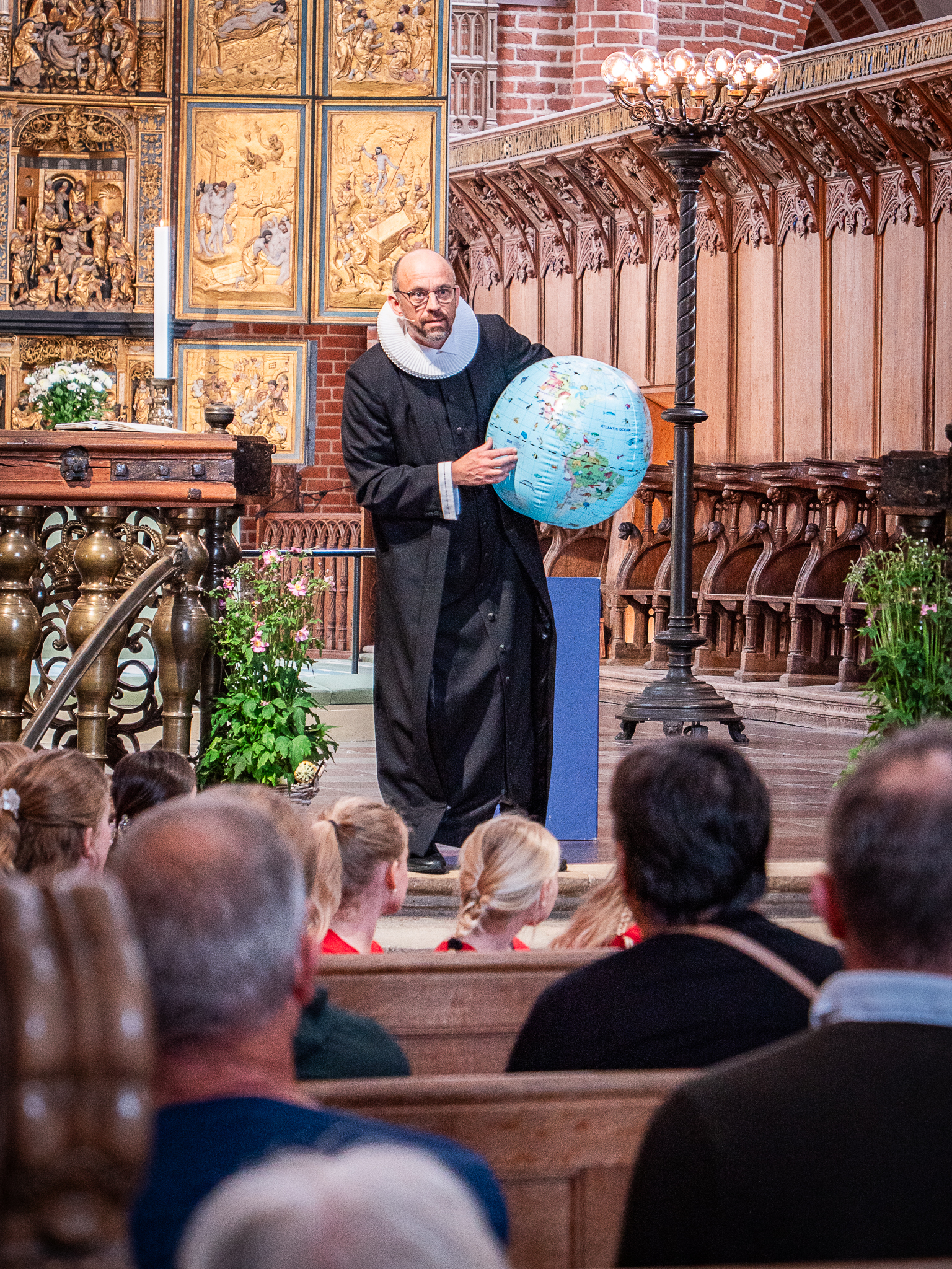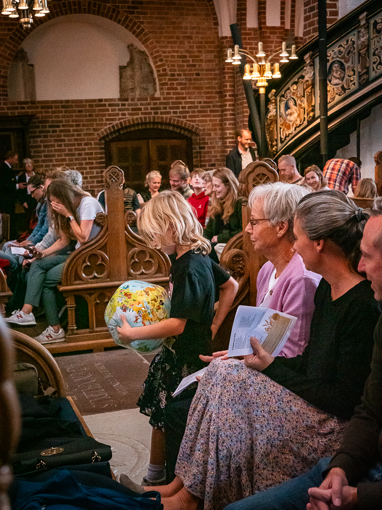 Samtidig fyldtes Domkirken af børnefamilier til høstgudstjenesten, hvor der både var skattejagt, flyvende oppustelige jordkloder og sang fra kirkens børnekor.