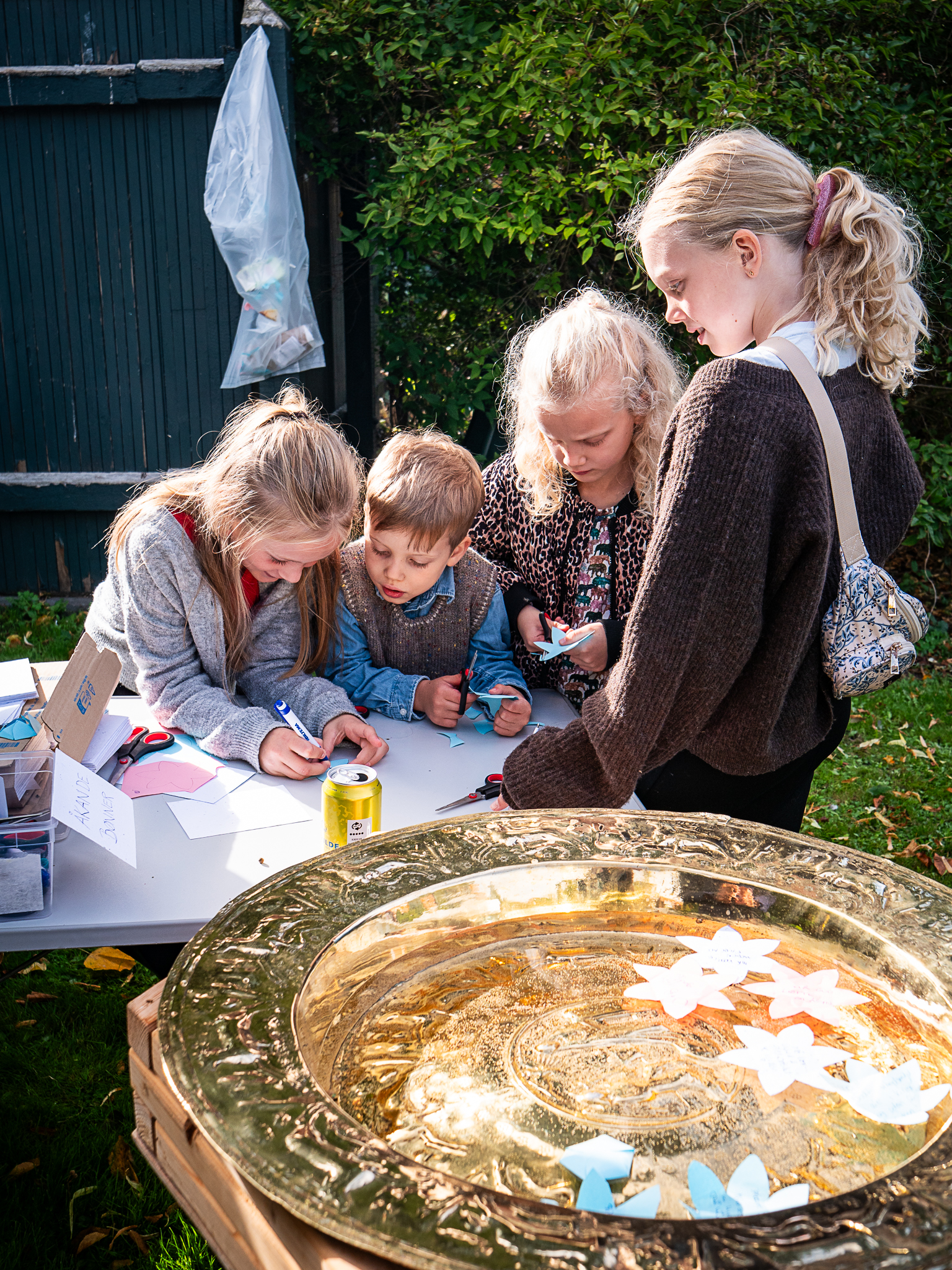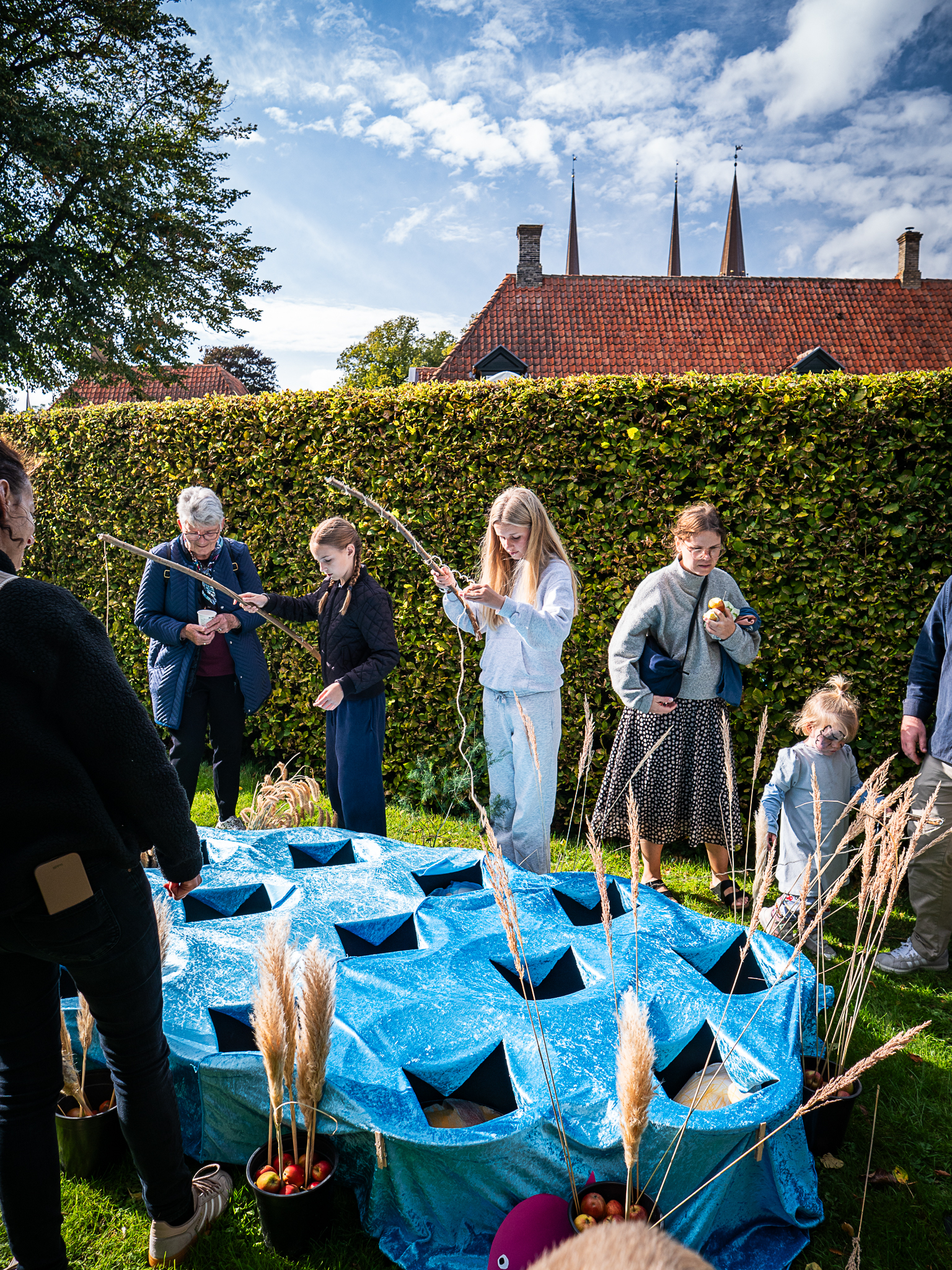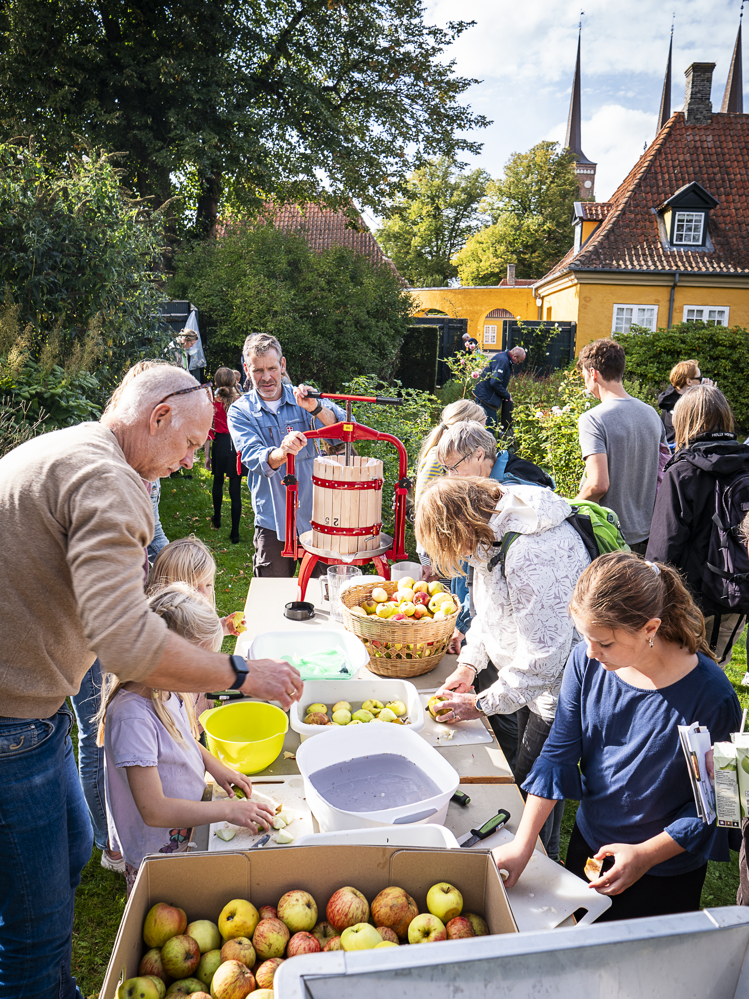 Om eftermiddagen åbnede biskoppens have med aktiviteter for alle aldre. Her blev der bl.a. presset æblemost af frugter fra Slagelse Klosterhave, spist hjemmebagte æblemuffins, fanget fisk og foldet papirsbønner.