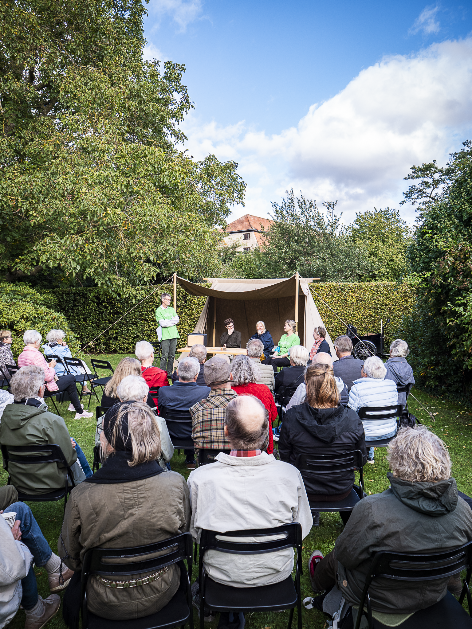 I og omkring Det Gule Palæ summede det af liv. På workshops kunne deltagerne bl.a. høre om, hvordan kirker kan omlægge landbrugsjord til mere vild natur, eller fordybe sig i grøn spiritualitet – en vej til et dybere fællesskab med naturen.