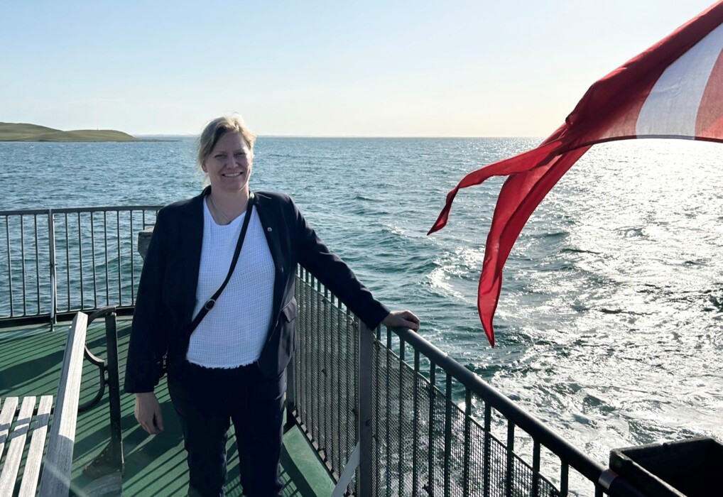Ulla Thorbjørn Hansen på vej til pinsegudstjeneste på Sejerø. Foto: Roskilde Stift
