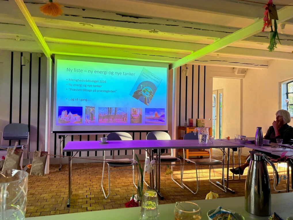 Menighedsrådet havde lavet en flot præsentation med billeder, og jeg kan kun opmuntre andre menighedsråd til at gøre det samme. Det var en flot præsentation, som vil egne sig til at blive brugt til det årlige pligtige menighedsmøde, hvor menighedsrådet skal invitere alle i pastoratet til at høre om, hvad der foregår, og hvad man har af planer for det kommende år.