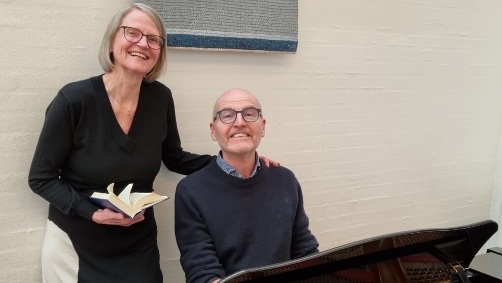 Kirkesanger Marianne Sivholm og organist Ove Mathiesen har begge 25-års jubilæum i Solrød Strandkirke i år. Foto: Solrød Kirke